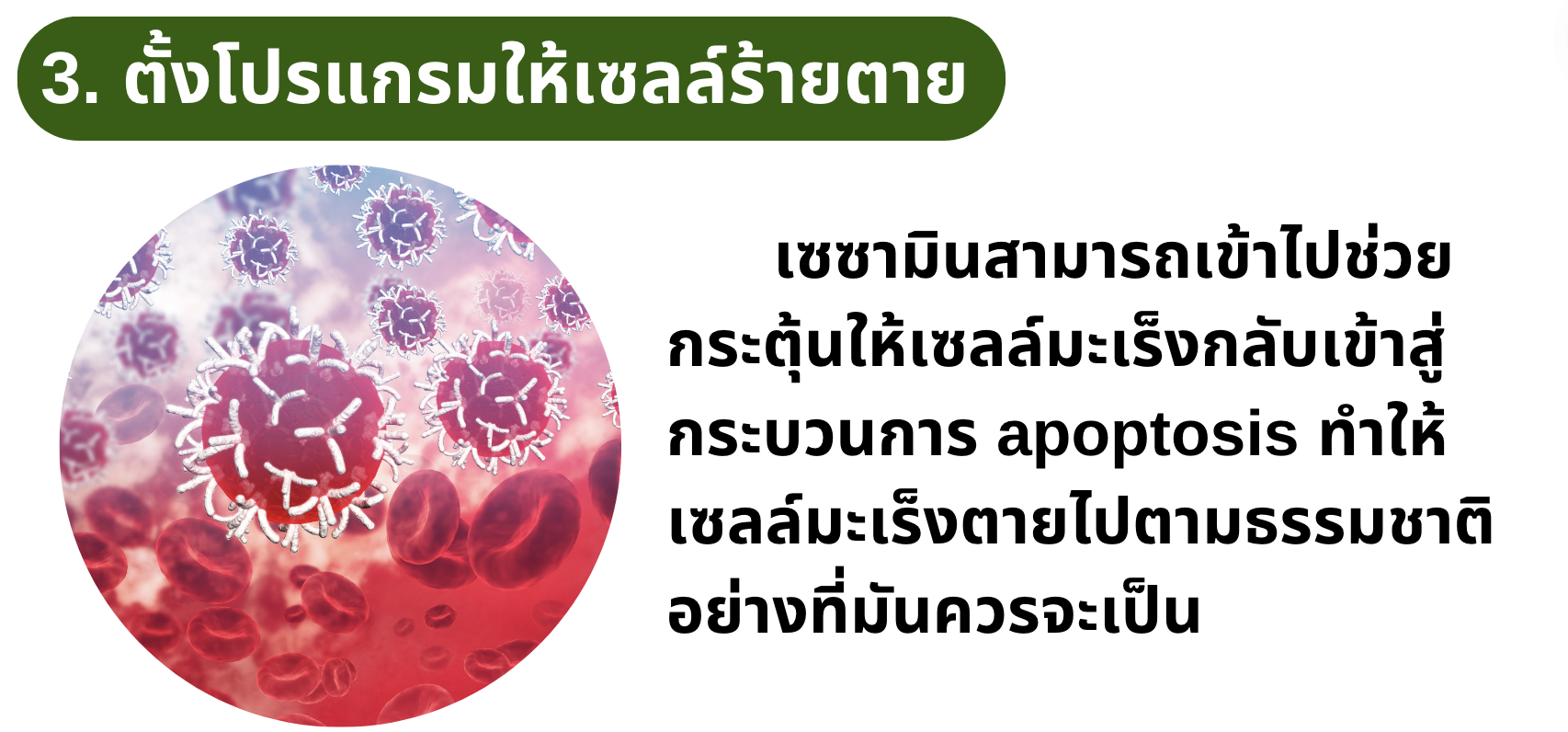 เพื่อน ๆ พี่ ๆ ท่านใดที่กำลังกำลังเป็นโรคมะเร็งอยู่ขอแนะนำ สารสกัด “เซซามิน” จากงาดำ ครับ ผลงานวิจัยศูนย์เชียงใหม่ ไม่ต้องลองผิดลองถูกอีกต่อไป